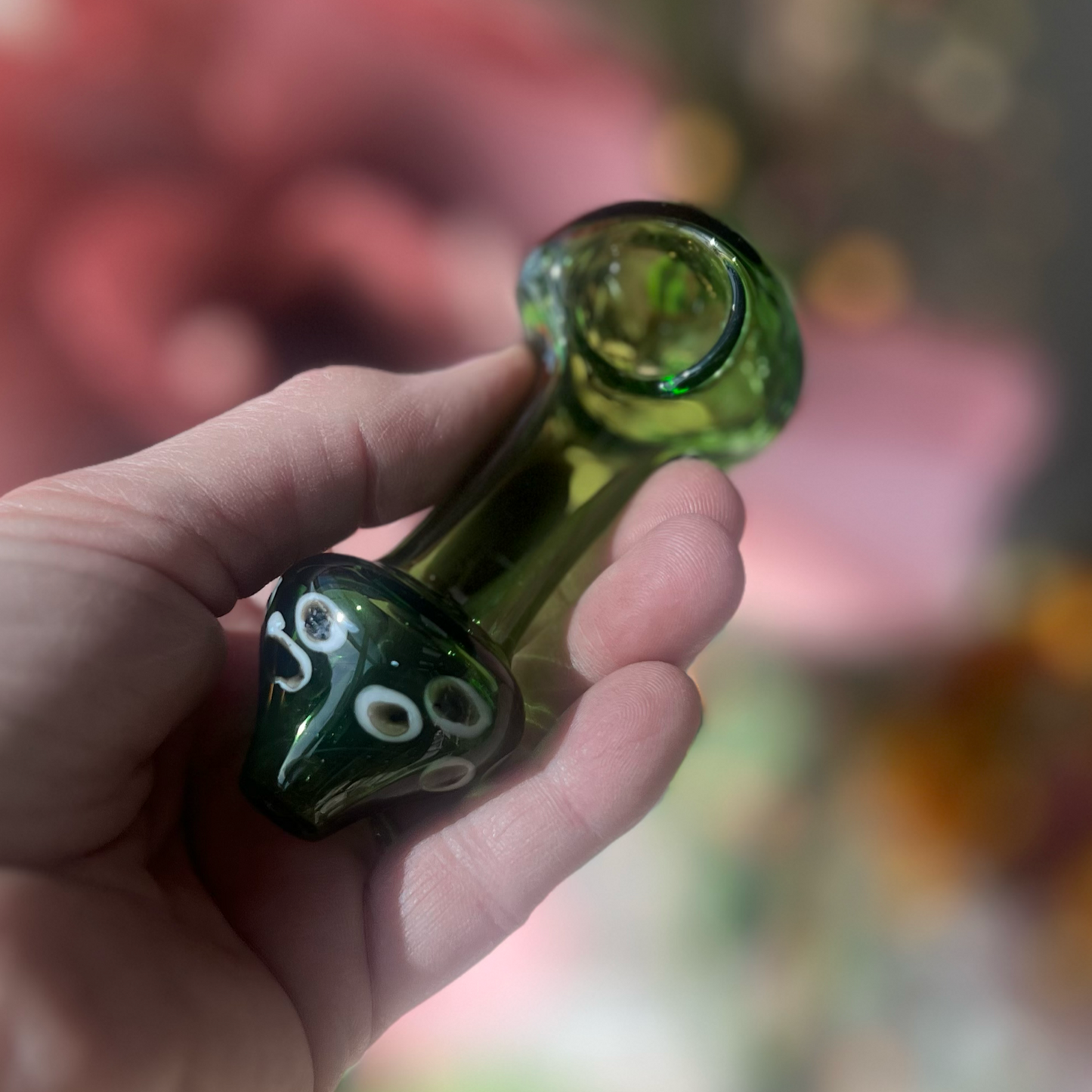 THICK GLASS The pipe is made of extra thick and heavy glass to ensure it's durability and safety, you don't need to worry about your clumsy friend breaking your glass piece in one drop! 3.75”