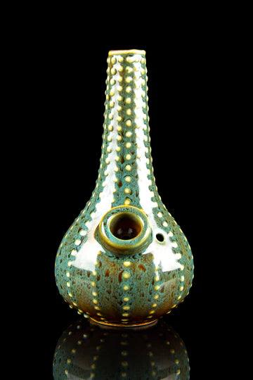The Sea Urchin Bubbler by Art of Smoke stands 6-inches tall and is modeled after the curious spiky underwater creature that can live up to 200 years. This bong has a built-in non-removeable bowl with a left side carb hole for controlling airflow. And since the downstem is built-in, you can use this bubbler with or without water.